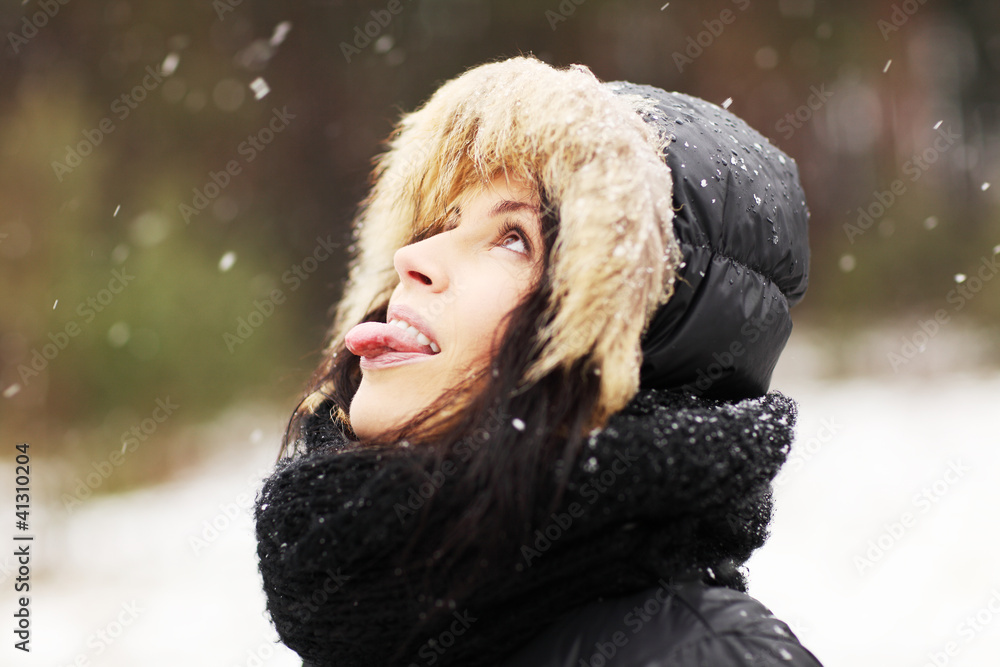Woman eating snowflakes