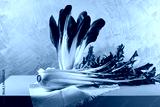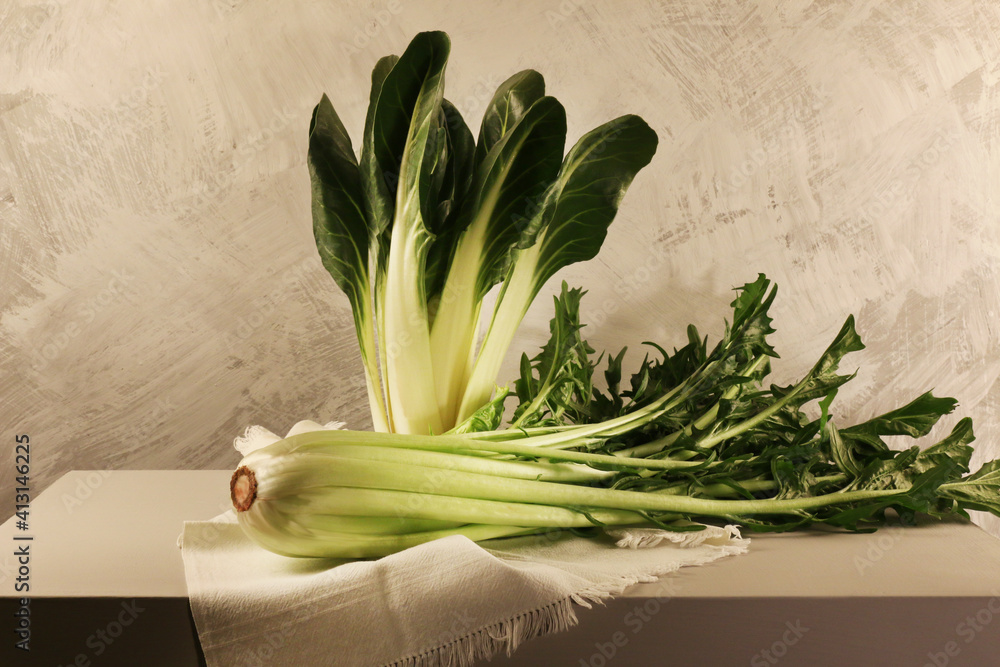 Natura morta con bietola e cicoria isolate su fondo grigio spatolato