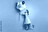 Full length body size view of her she nice attractive amazed wavy-haired girl holding air balls preparing corporate event evening date meet isolated on bright vivid shine vibrant blue color background