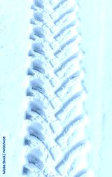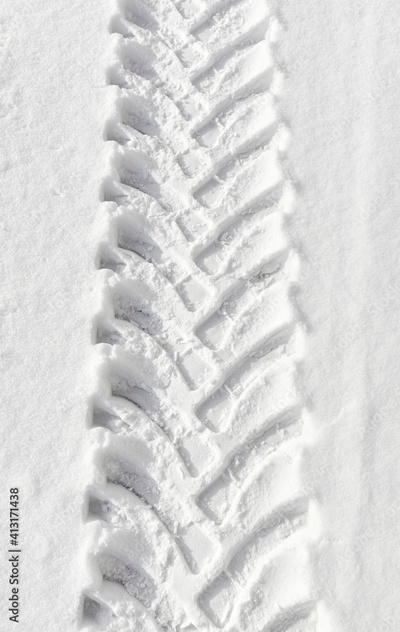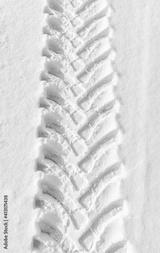Picture of heavy duty vehicle tire track in snow, abstract background.