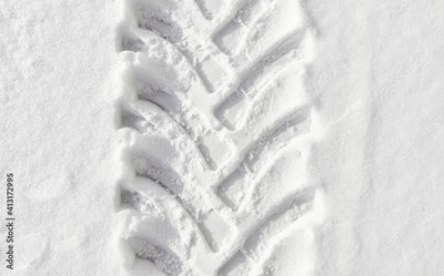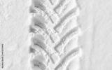 Picture of heavy duty vehicle tire track in snow, abstract background.