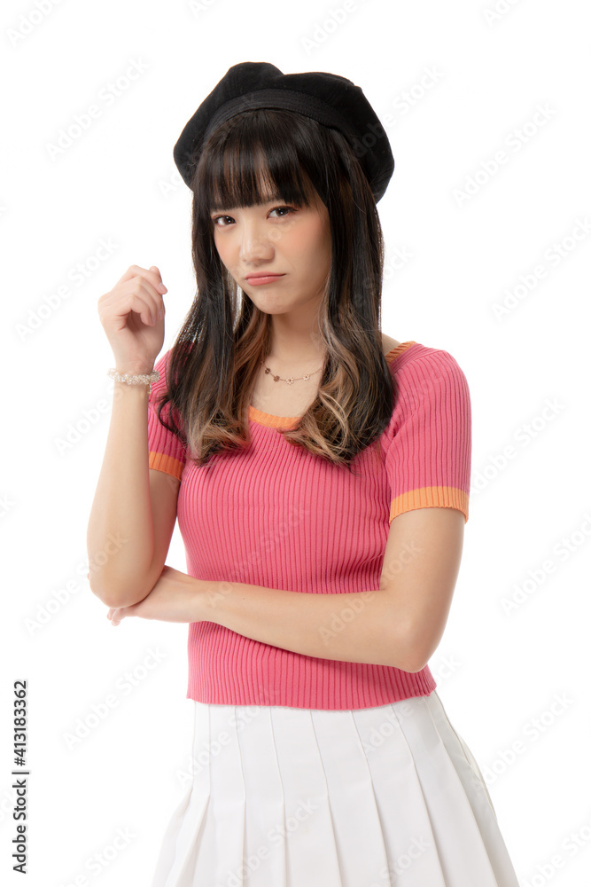 Happy Beautiful Asian Girl Standing With Delight Posing On Isolated White Background