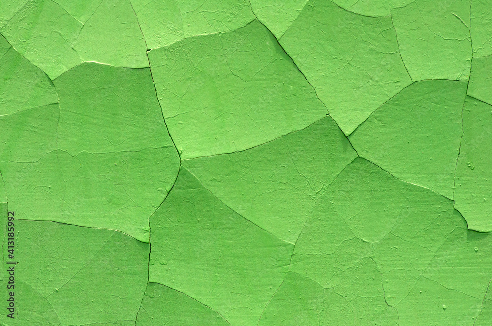 Broken green concrete wall for interiors, art wallpaper or artistic texture background