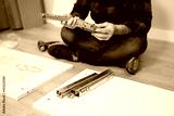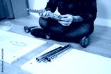 Portrait of man assembling furniture. Do it yourself furniture assembly.