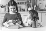 The children received gifts for the holiday. Happy kids open gift boxes for Valentine's Day. Brother and sister have fun and rejoice in surprise