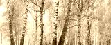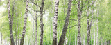 Young birch with black and white birch bark in summer in birch grove against the background of other birches