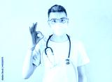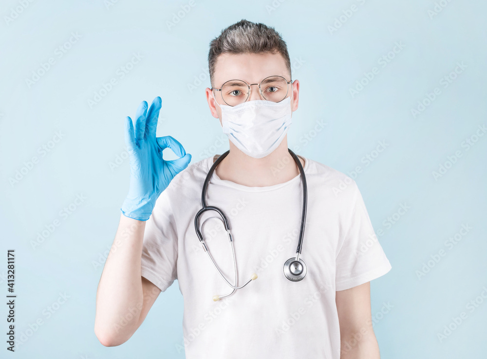 Covid-19, preventing virus, healthcare and vaccination concept. Happy smiling doctor in medical mask and gloves assure all good, show okay sign as guarantee safety and quality of service in clinic