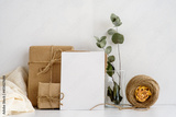 Fashion stock stationery background on a white background. blank postcard for lettering and gifts in kraft paper. Wedding background. Invitation card.