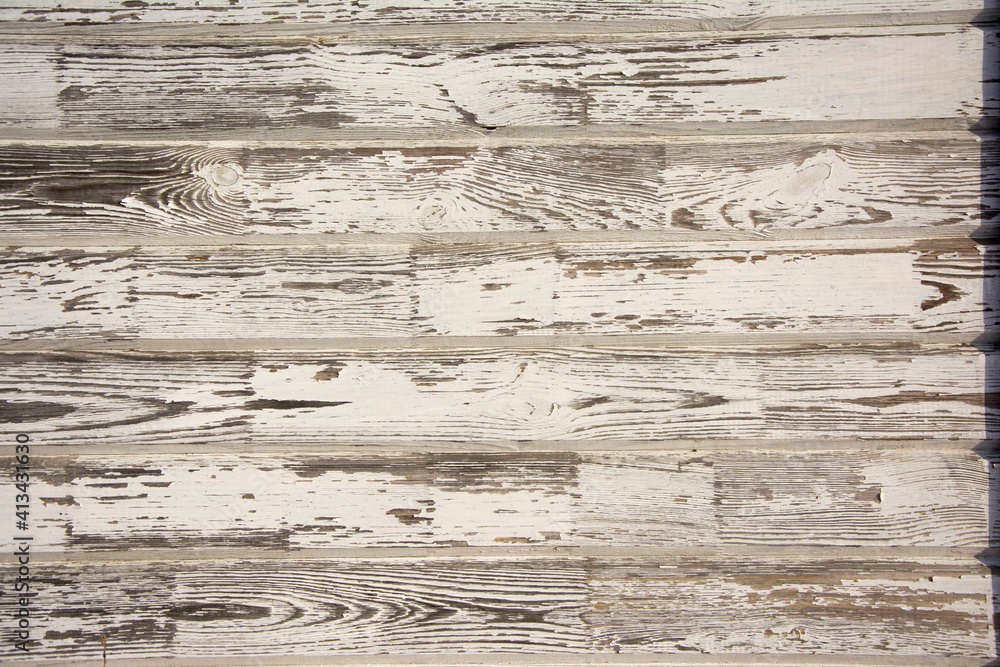 natural old boardwalk wooden background with peeled white paint, patina, vintage