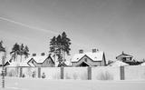 cottage village on a clear sunny winter day