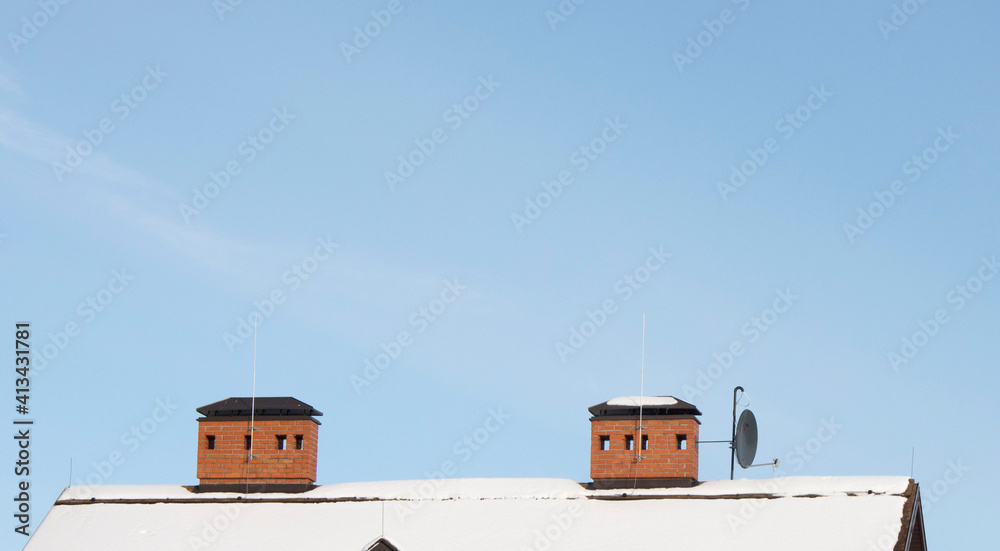 brick chimneys heating the cottage against the blue sky