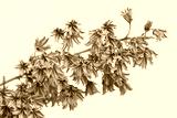 Bell shape tiny dry flowers autumn winter theme with branch and light background macro