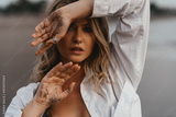 Young female enjoying sunny day on tropical beach Bali Indonesia