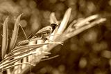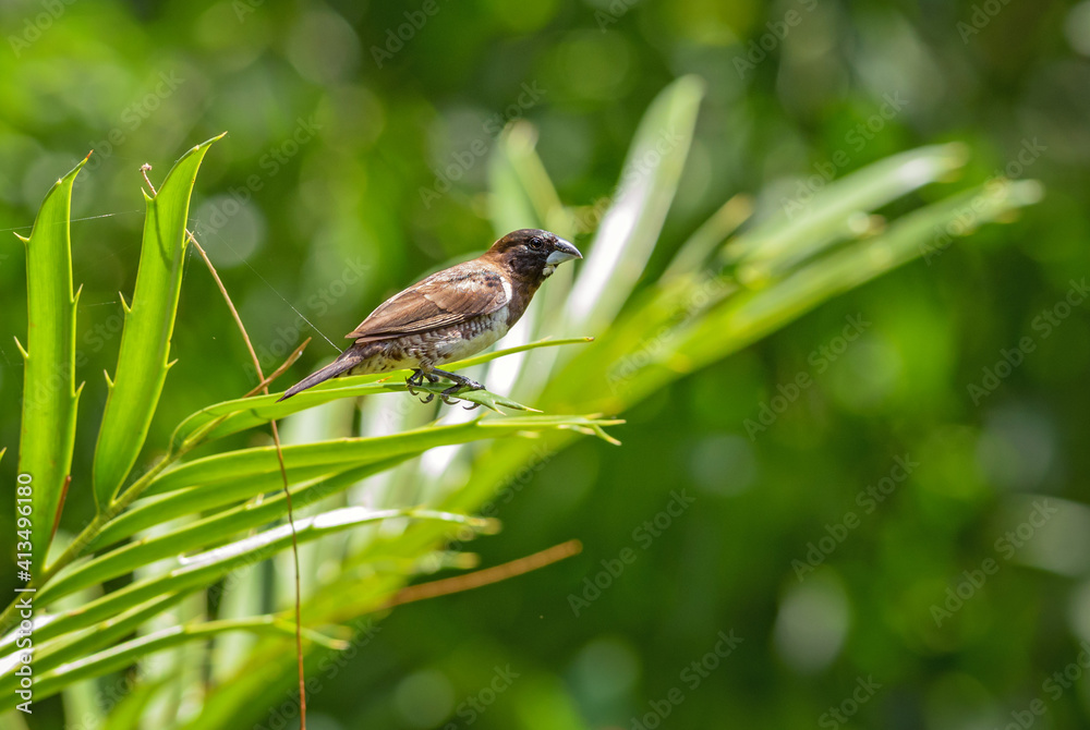 Bronze Munia - Lonchura cucullata, beautiful small perching bird from African gardens and bushes, Zanzibar, Tanzania.