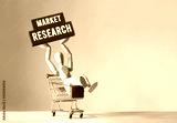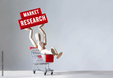 Wooden man hold a red wooden block with word Market research ,concept