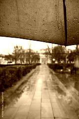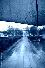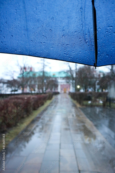 walking under blue umbrella in the rain