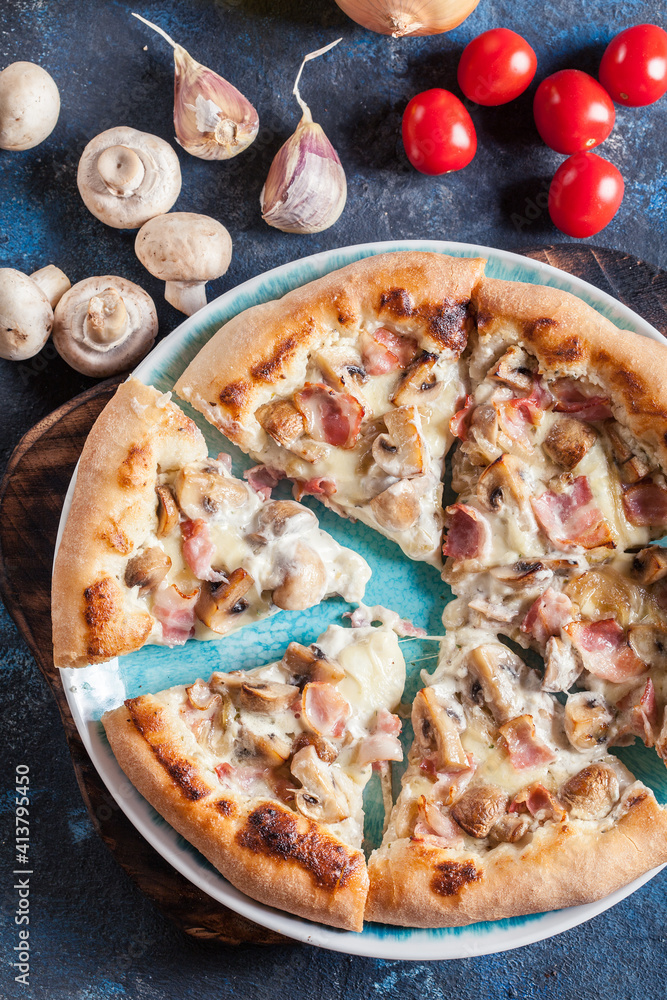Pizza Bianca with bacon and mushrooms