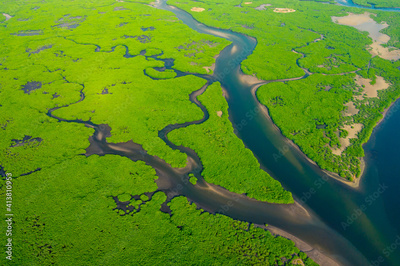 Aerial View of Green Mangrove Forest. Nature Landscape. Tropical Rainforest.