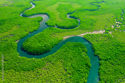 Aerial View of Green Mangrove Forest. Nature Landscape. Tropical Rainforest.