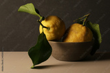 Limoni. Natura morta con ciotola su fondo grigio, come fosse un dipinto