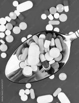Pills in the spoon closeup