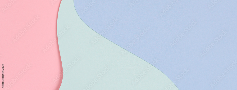 Abstract colored paper texture background. Minimal geometric shapes and lines in pastel pink, light blue and green colours