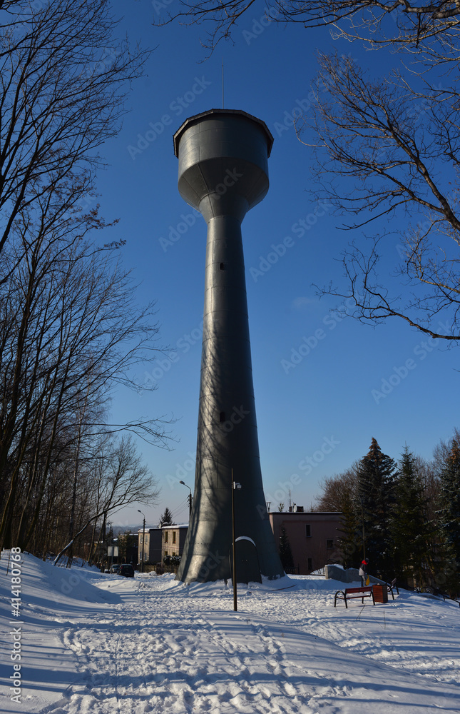 Zabytkowa wieża ciśnień w Będzinie Grodźcu.