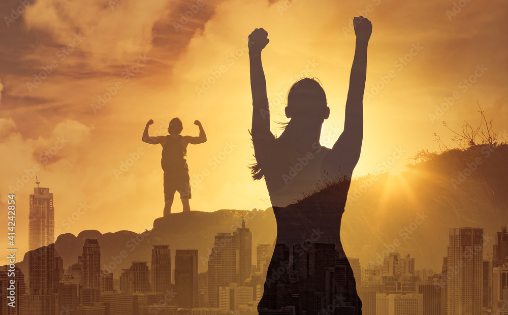People achieving goals and aiming high for success concept.