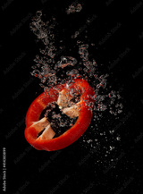 Slice of red pepper underwater