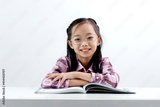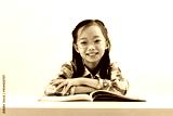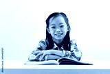Young Asian Girl Sitting At A Desk And Working On Her Homework