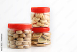 Chinese New Year traditional butter cookies in plastic containers isolated on white background.