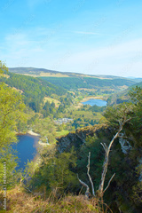 Panorama of Lake Lough Tay or The Guinness Lake. County Wicklow, Wicklow Mountains National Park, Ireland.