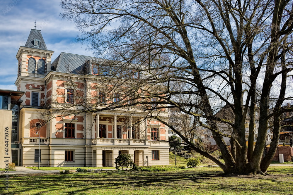 erkner, deutschland - rückseite vom rathaus zum stadtpark