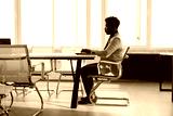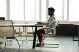 handsome young african man in office with laptop