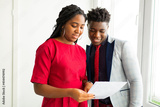 beautiful african man and woman in office