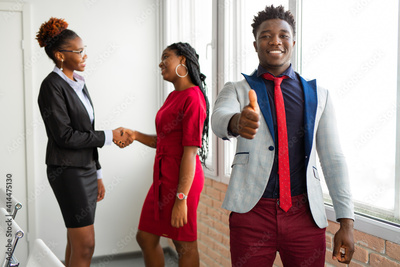 team of young african people in office with hand gesture