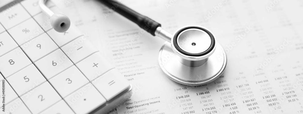 Stethoscope and calculator. Concept of health care costs or medical insurance