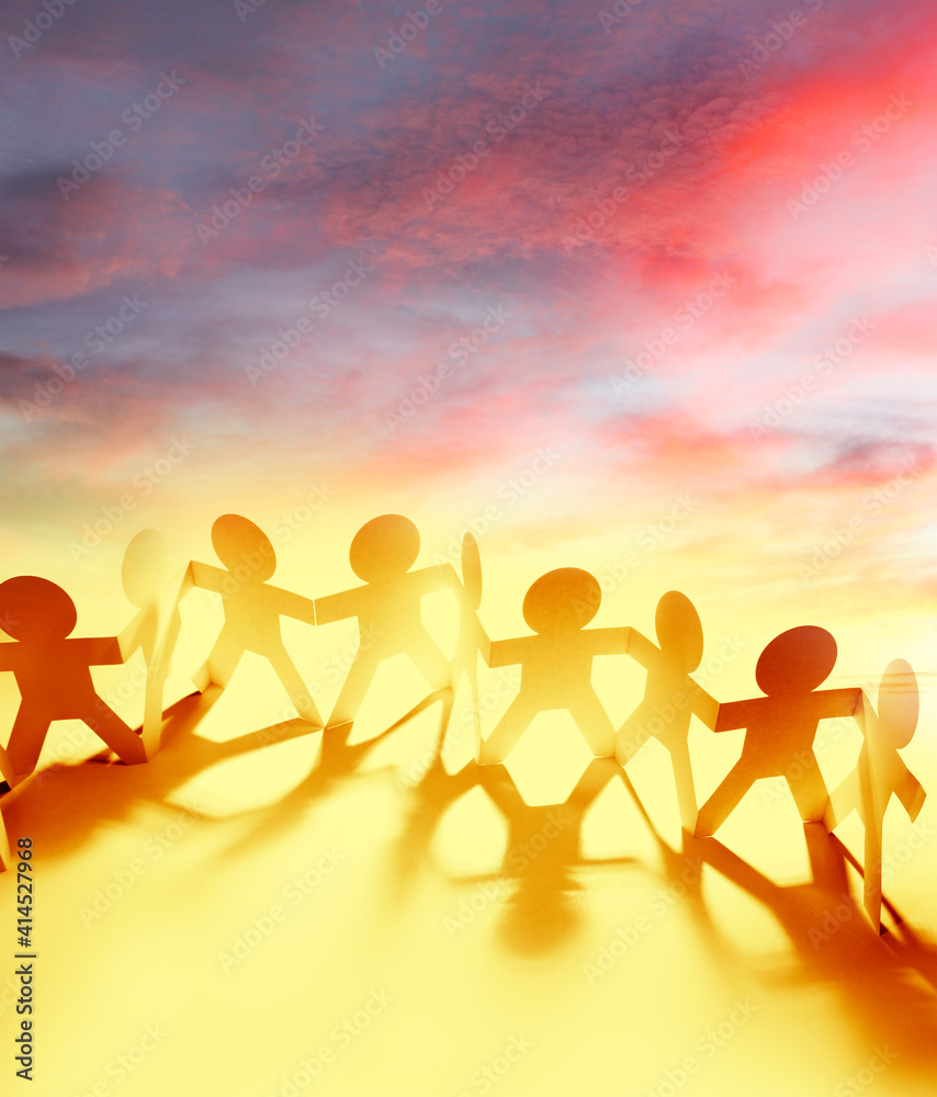 Paper chain team and sky
