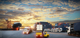 forklift handling container box loading to truck in import export logistic, Business logistics concept