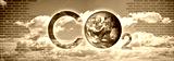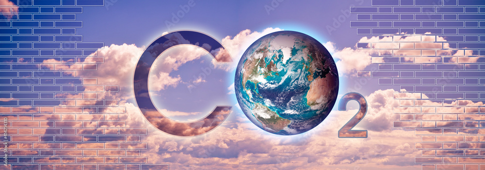 Presence of CO2 in the atmosphere - concept image with a NASA planet Earth image behind an opening brick wall.