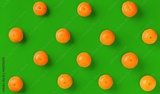 Fruit pattern of fresh orange tangerine or mandarin on green background. Flat lay, top view. Pop art design, creative summer concept. Citrus in minimal style.