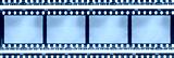 long 35mm negative film strip with empty or blank frames and strange scanning light interferences on the material.