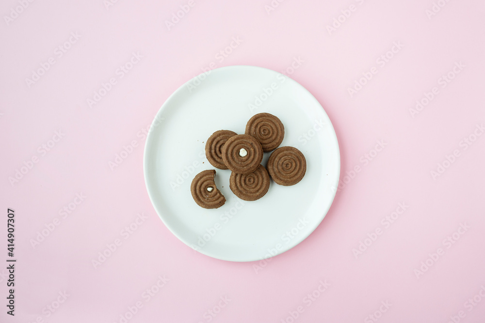Cocoa biscuit on a white plate