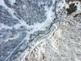 Aerial shot of a snowy forest for backgrounds and wallpapers