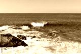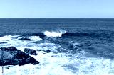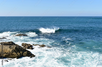View from a cliff with waves breaking at famous Rias Baixas in Galicia Region. Porto do Son, Coruña, Spain.