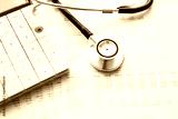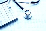 Stethoscope and calculator. Concept of health care costs or medical insurance