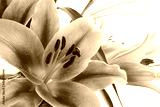 Pink blooming Lilium flower with pistils macro close up studio shot isolated on white