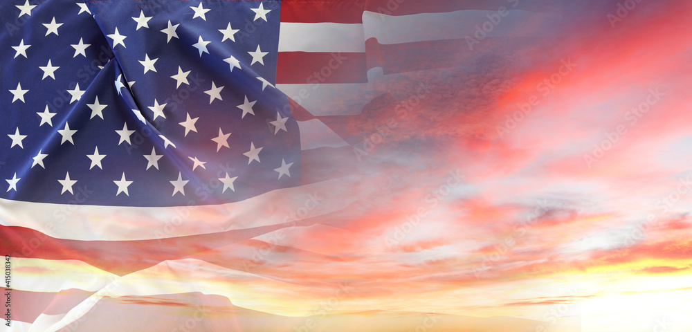 America flag in sunny sky. Freedom. Independence day