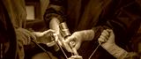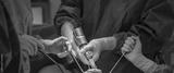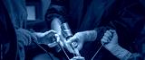 Team of doctor perform total knee replacement surgery in osteoarthritis patient inside the operating room. Selective focus at oscillating saw that cutting the bone.Close up photo.Medical concept.