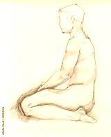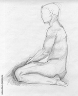 Human figure of a naked man from profile, charcoal sketch